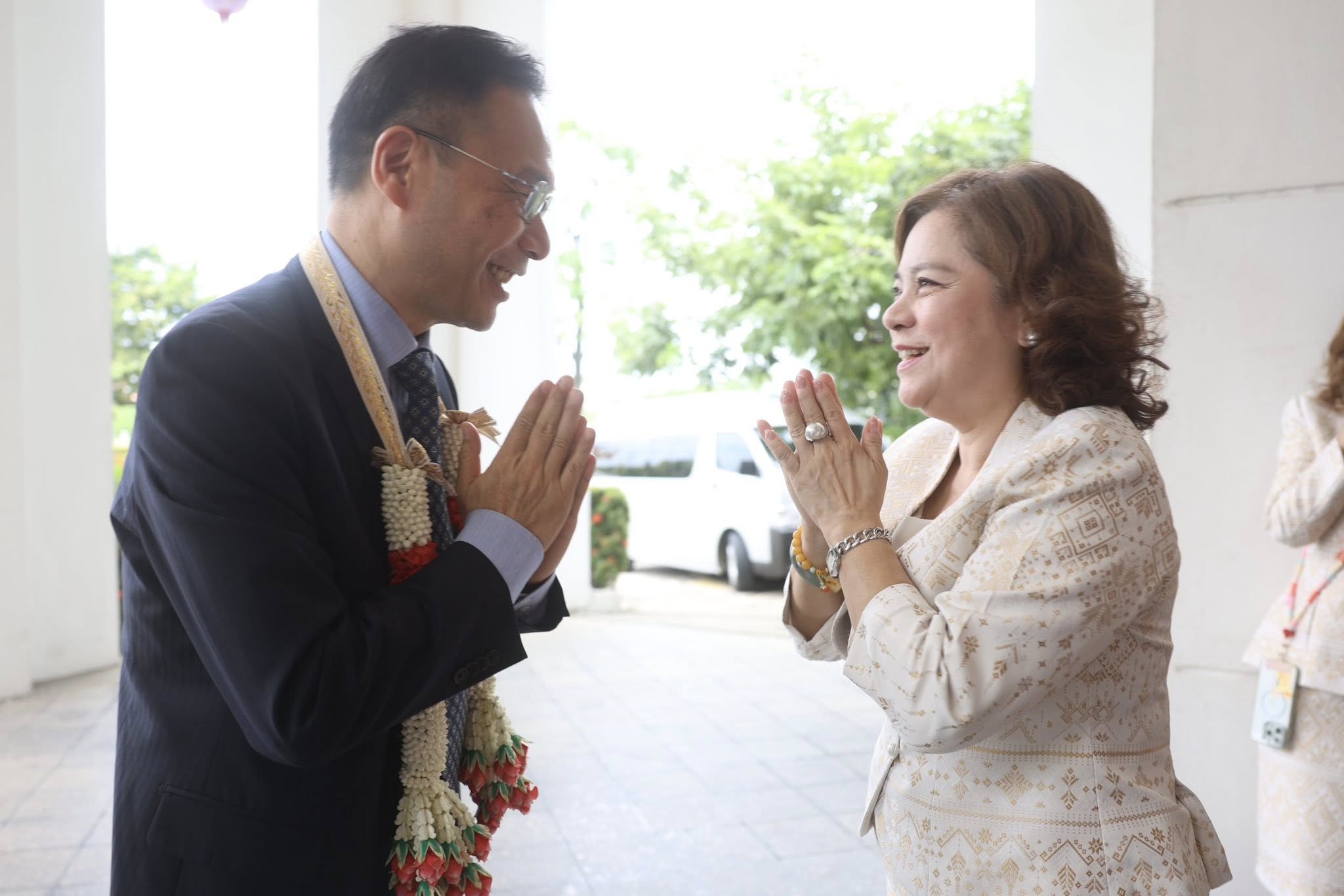 中華民國駐泰代表處新任大使 藍夏禮 閣下,於本日(7月30日)蒞臨 泰國台灣會舘 訪視指導,主席張玲琴及監事長張清標帶領主席團全體與會接待,藍大使的細心指導與鼓勵,是台灣會舘最大的榮幸。