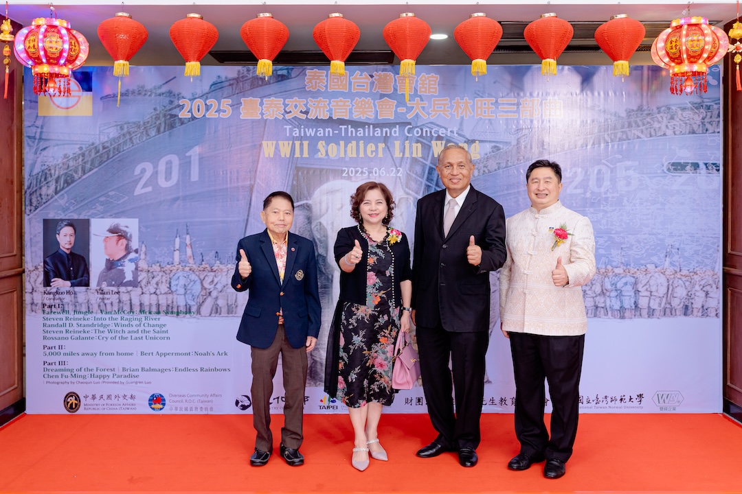 駐泰代表處 董思齊 公使特地讚賞台灣會舘及台北市民管樂團對於台灣文化輸出的卓越貢獻,泰國台灣商會聯合總會 陳漢川 總會長賢伉儷亦到場聆聽,表達對於台灣會舘文化活動的深切支持,泰國台灣會舘主席張玲琴、監事長張清標、籌備主委鍾志欣感謝所有嘉賓的蒞臨,會舘將持續推動利益鄉親的文化活動,懇請各位持續支持台灣會舘。