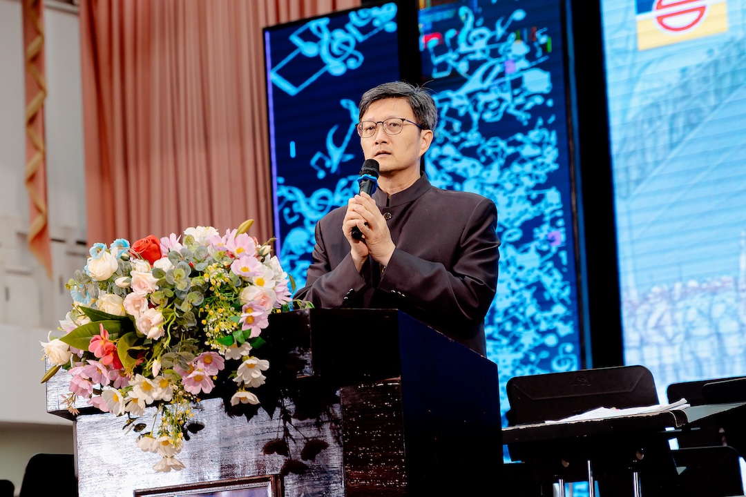 2025台泰交流音樂會於周日(6/22)圓滿落幕,來自台灣的台北市民管樂團,以林旺的傳奇故事為藍本,創作大兵林旺三部曲,在指揮老師 何康國 教授的引導之下,樂團演繹優美樂音,搭配上 李如青 老師的繪本意象,內容真摯感人,許多嘉賓彷彿身歷其境,不少人為此潸然淚下,演出過後全場起立,掌聲不斷,現場聽眾久久不能自己。
